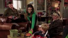 At No.1, Steve, Tracy, Daniel and Daisy are horrified when they realise all the presents have gone from under the Christmas tree, including the engagement ring Daniel's bought for Daisy! Spider begs Toyah to keep his huge secret. While Fiz worries about Christmas, Tyrone shares a secret smile with their girls. George excitedly waits for Eileen's present to arrive. But as he takes delivery of the secret item, it's clear there's been yet another disastrous mix-up