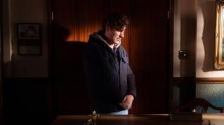 With Billy's funeral looming, Theo is struggling with guilt. At the funeral parlour, he approaches the coffin and apologises for leaving Billy to die.... but someone hears him. Debbie tells Todd she would like to donate £3K towards the funeral but her words upset him. Protective Theo has a go at Debbie but Carl rushes over.