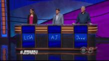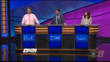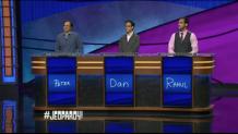 Jan Corsetty, a database administrator from North Potomac, Maryland; Kevin Patterson, a management consultant from Cambridge, Massachusetts; James Rodrigues, a filmmaker from New York, New York (whose 1-day cash winnings total $27,400).