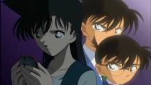 It was the beginning of the night at midnight that Conan, Ran, and Kogoro have dinner at midnight. After the meal, Conan went to bed, and Ran asks him to brush his teeth before going to bed. She has now became suspicious that Conan is Shin'ichi. She went to the office to check on Conan's cellphone. Ran decided to check for mail in the phone so that she would know that Conan is Shinichi. She typed every pin code in the cellphone, but didn't work. Ran begins to remember what code Shinichi choose. Ran began to type the code 5545, but couldn't. She realized that Shinichi has to choose what code it is. After discovering that the mail isn't there, Ran decided to send it, but couldn't. Just then, she gets a call from Shinichi, who questions her why is she keep sending the mail over and over again. Rachel begins to forget that Conan is Shinichi. In Conan's room, it was revealed that he hides his real cellphone in the bucket.