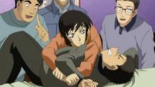 The murder investigation narrowed to three suspects who were recent arrivals at the nearby inn. Conan deduced the culprit and the cause of the murder. He confronted the culprit at the murder site, but a shock waited him, Ran and Sonoko - the culprit was not alone! The culprit was a yakuza lieutenant who brought henchmen far too numerous for Ran to deal with alone. Makoto arrived in the nick of time, he and Ran fought them off until the police arrived.