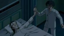 Rikumichi Kusuda, the fake patient who the FBI is spying on, sneaks into the nurse's office and takes pictures of the list patients. He is caught by a nurse and the FBI deploy. Rikumichi unravels the bandages around his neck to reveal he has C-4 explosives and makes a getaway in a car. Akai follows him with Conan who was hiding in the back, but the chase is cut short when Rikumichi shoots himself. Conan broke Rikumichi's cell phone prior to the escape, but it's too late, the Black Organization already knows where Rena lies. Back in Rena's room, Eisuke walks in demanding her to wake up and tell him where his sister is. Just as Eisuke is about to stab her with scissors, Rena grabs his hand.