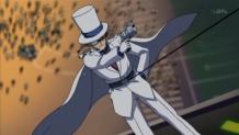 Sonoko's Uncle sets up another trap to catch Kaito Kid. This time he holds the Purple nail as the treasure for KID. KID swoops down and takes it and the Uncle sets up a nets on the side so KID is trapped. KID however appears twenty second later on the roof of a building and escapes, declaring he shall return again the next day for the second pair of the purple nail. The next day, Kid uses his trick again to appear on the roof of a building but is intercepted by Conan. Conan reveals that by using sand bags and one of the reporters tied to a rope, he was able to leverage himself to the top of the building.