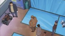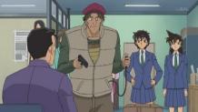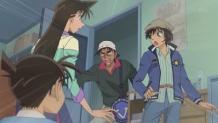 Ran, Sonoko, and Conan are on the bus ride to Haido Hotel. Sonoko felt like that someone touched her butt. She caught the guy in the blue hat and accuses him that he's the pervert. The guy in the blue hat tells Sonoko that he's not a pervert but Sonoko thinks he's lying. So she told Ran to beat him up. Ran does as she says so she kicks but the guy in the blue hat blocks Ran's kick with his leg. He punches and Ran dodges. He kicks and Ran dodges again. Ran realizes that her opponent is using Jeet Kune Do. The guy in the blue hat is trying to explain that he's not a pervert but Conan explain for him instead. Conan saw that the real pervert was about to touch Sonoko's butt and the guy in the blue hat stopped the pervert. Sonoko got really mad at the real pervert. When the bus stops, the pervert got out quickly and runs away. Ran apologizes to the guy in the blue hat and he says it's okay. He asks where Ran is going and she told him that she and her friends are going to the Haido Hotel. Th