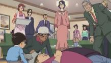 Chiba is unable to recall Naeko's face though notes his familiarity. During the investigation, Conan realizes the culprit's motif and has the police let the suspects leave.