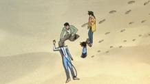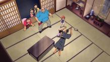 The guard named Zenkichi Ooka is threatening two people to keep giving money to him.