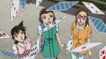 Within a certain bookstore, the Detective Boys were playing trading cards - Mitsuhiko was having a confrontation with Genta. While they were playing, Conan, Haibara, Ayumi, and Professor Agasa were watching nearby. On the other side of the table stood two mystical people... also watching their games in silence.