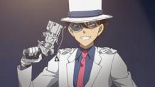 The Queen's Bang tiara, the centerpiece of the Robanov imperial treasures exhibit, is stolen by Kaito Kid! The exhibition hall is suddenly enveloped in white smoke, and by the time it has cleared, the tiara inside the case has vanished. Because a gas mask would ruin his disguise, it's unlikely Kaito Kid was wearing one. The suspects are narrowed down to Amuro, Azusa, and Kazami, who were standing near the tiara without masks, so Conan decides to investigate.