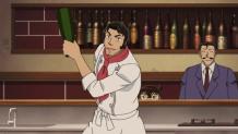 Conan and the Detective Boys arrive at a newly opened candy store. Chindon-ya is playing, and plums are handed out, perhaps in celebration. For the first time, the Detective Boys are obsessed with sweets, but Conan doesn't seem interested. Genta gets angry at Conan and says "You're acting like an adult!" The two get into a fight, and Conan decides to go home alone. On the way, an old gentleman jumps out of the alley and asks for help, saying, "I saw the dead omelet rice!"