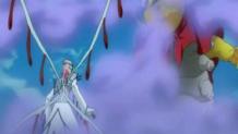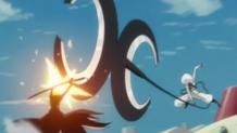 Uryu and Renji struggle against their clones. Szayel reveals a second ability: he is able to create voodoo dolls of an opponent by wrapping them in his wings. He succeeds with Uryu and Renji, and shows that by using them, he can cause pain to the targets and damage their internal organs. Meanwhile, Nnoitra is still losing to Neliel, but they hesitate before they can deal each other fatal blows, and Nnoitra notes that he has despised Neliel even before her departure.