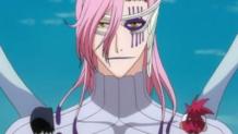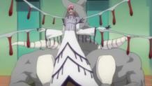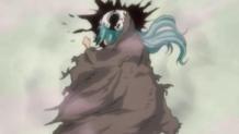 Zommari survives Byakuya’s attack but Byakuya, having already discovered how to counter his ability to control others, quickly dispatches him. Mayuri initially seems unable to fight back against Szayel destroying his organs, but reveals that he has made himself immune to Szayel’s ability by replacing all the organs in his body after learning about the ability from bacteria he implanted in Uryu. He then activates his bankai, poisoning Szayel despite his efforts to make an antidote, then has it swallow Szayel.