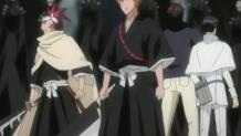Patros is still battling Renji, while in Hueco mundo Aizen returns to the where the Hougyoku was. Renji activates his bankai and Ririn, Kuroudo and Noba join the fight. But will that be enough to fight against Patros? Meanwhile, Hitsugaya, Matsumoto, Yumichika and Ikkaku are still fighting against the other two arrancars. Who will win and what will Aizen say about the Hougyoku?