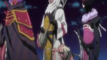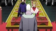 Yamamoto with the proof he needs to attack the Kasumiōji. Kumoi starts to panic and releases all the ninja armed with bakkōtō to fight off the Shinigami invasion. He also holds Rurichiyo hostage and is finally cornered by Ichigo and Rukia and some one comes in and stops him.
