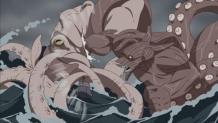 After a long voyage at sea, Naruto’s ship finally arrives at the island of its destination. Before everyone can rejoice, a giant squid attacks the ship. Fortunately, the crew is saved by Killer Bee, the Eight Tails’ jinchuriki host.