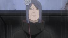 Tobi heads to Hidden Rain Village to retrieve Nagato's Rinnegan. Konan, now a former member of Akatsuki, recollects her past until Tobi arrives. Tobi asks Konan where is Nagato's Rinnegan and Konan replies that it is not located in the village. Their battle started and Tobi tells Konan that he encouraged Yahiko to form Akatsuki and he gave the Rinnegan to Nagato. Konan transforms into thousands of pieces of paper to self-destruct against Tobi, yet it fails and both survives. Konan unleashes a powerful paper technique that looks like a sea of paper beneath their feet.