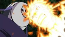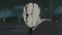 Naruto enters Tailed Beast Mode and attacks Tobi, causing both Kakashi and Guy to look on, stunned but Tobi later emerges from the blast, unharmed. Meanwhile, a hesitant Kakashi is in disbelief of the masked man's identity but Guy snaps him out of it. As the battle rages on, Kakashi is finally motivated to fight and prepares to join the fray. Tobi unleashes a shower of gigantic chakra receivers, paralyzing B and Gyūki. Naruto creates a shadow clone and it charges forward with Rasengan while the original prepares a Tailed Beast Ball with B and Gyūki acting as a shield. As Naruto launches his technique, Tobi simply phases through and with that, fully enters the other dimension. There, he witnesses the clone earlier and realizes that Kakashi did not just teleport the Rasengan but the clone itself. With little time to react, Tobi curses Kakashi before he is hit by Naruto's Rasengan; his mask shattered into pieces. Watching on, Kakashi and Guy are shocked to see that the masked man is their