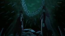 Back at the front lines, the five Kage struggle to hold their own against Madara's Susanoo-clad wood clones. Despite these great odds, Ōnoki rallies them to fight, noting that they need to fulfil a task at which cannot be failed. Madara realises that Ōnoki is the problem and that he must break his will. With that, the Kage go on the offensive against Madara's clones once more. The situation soon takes a turn for the worst as Madara in turn responded with his full power by activating his final Susanoo and proceeds to using its sword to attack them. Elsewhere at the cave, Itachi commands Kabuto to put an end to the Impure World Reincarnation, during which time Sasuke states his resolve to destroy the village that made his brother suffer for so long while bidding farewell to Itachi altogether. As the lights surrounding the reincarnated shinobi begin to illuminate the battlefield as they faded into pillars of light, Itachi approaches Sasuke and uses his Sharingan to show Sasuke everything
