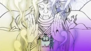 Naruto wakes up and encounters the legendary shinobi, the Sage of Six Paths. He reveals to Naruto that he is the reincarnation of his son, Ashura, and that Sasuke is the reincarnation of Indra, Ashura's older brother.