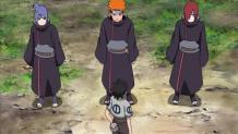 Sasuke and Sakura join up with the others, but the Puppet User appears and blocks their path back to the Hidden Leaf Village. Sasuke wants to bring down the puppets and rush back to report to the Fourth Hokage, but Shikamaru and the others insist on staying and rescuing the jonin.