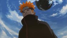 Seeing Hinata almost die triggers Naruto’s anger and he goes into Nine Tails State. Naruto's power is enormous, but Pain releases his jutsu to seal him away. Hatred consumes Naruto as he tries to break the seal. With Naruto unable to calmly control the Nine Tails’ power, the village steadily heads toward destruction.