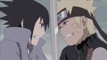 Naruto reaches the tower Sasuke was heading for, thanks to Neji, Lee and Tenten deterring the agents from the Foundation. But it's too late—Sasuke's already made contact with Orochimaru! Naruto passionately tries to reason with Sasuke, but ultimately their powers collide!