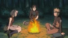 Team Kakashi begins facing off against the enemy shinobi. Yamato eludes his opponent, Fudo, by faking his death. Sora, unwilling to look for Naruto, goes off on his own. Back in Konoha, Danzo reveals that he is aware that he is being watched by Tsunade's ANBU. Naruto fights Fūka, whose kiss is fatal and shows her ability to use earth, fire, water and lightning jutsus. Sai manages to escape from his attacker, Fuen, and later saves Sakura from an enormous spider, becoming injured in the process. Sora then hits upon the enemy leader, Furido, and it is revealed that he was the group's target.