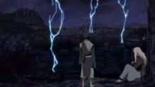 With Konoha in complete darkness, the village struggles to defend against the four attackers who have sealed the entire village behind a barrier. The entire village is in a state of emergency. Asuma, commanded by Tsunade to follow Sora and Naruto, finally catches up to them. Asuma realizes that the four invaders plan to annihilate the entire village using the lightning powers of the corpses that they stole. The revelation shocks Sora. As Asuma leaves to help hold off the attackers, he instructs Naruto to continue pursuing Sora.