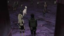 Sora refuses to let Furido destroy the village despite his grudge against Asuma and the Hokage. He is beaten up by Furido, who claims that his father had a similar flaw. Asuma gets trapped by Kitane in a force field of lightning. Meanwhile, Yamato and Sakura kill their opponents, and Shikamaru heads to the battlefield with a plan to defeat the zombies. Just as he puts it into motion, however, Fuen's barrier falls and Fudo's revival technique ends, and the zombies turn to dust.
