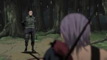 Shikamaru continues his fight with Hidan. Hidan manages to injure Shikamaru and curses him the same way he did Asuma, but when Shikamaru survives Hidan's attack, Hidan realizes something isn't quite right.
