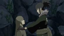 Naruto successfully breaks down the crystal labyrinth with his new jutsu and he and the rest of Team Kakashi come to Kakashi, Kiba and Shino's aide, and rescue Hinata as well. Meanwhile, Kabuto, Guren, Yukimaru and Gozu head to the lake Kabuto and Yukimaru went to before. What could be in the lake that Orochimaru wants?