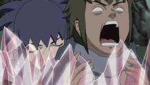In Konoha, Tsunade discovers they have an enemy using Crystal Style. While on his mission with Team Kakashi, Naruto meets Yūkimaru once again and talks to him. Guren puts a gigantic Crystal Prison over the forest trapping Team Kurenai inside. Guren then prepares six Crystal Clones and attacks Team Kurenai with them. Hinata defeats one clone but is locked up in a Crystal Prison by another. Team Kakashi reaches the borders of the giant prison and Naruto uses his new Jutsu with Gamatatsu to bust a way in.