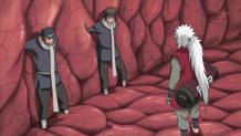 Having suspicions about the Nine-Tails' attack on the Hidden Leaf Village years ago, Jiraiya tells one of his frogs that the time may come when Naruto will need to access the fox's full power. His interrogations finished, Jiraiya sets out in search for Pain, but winds up encountering Konan instead. Is there a connection between Jiraiya, Konan, and the mysterious Pain? Elsewhere, one of Naruto's shadow clones runs into Team Hebi.