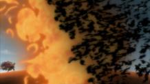 Sasuke's Sharingan proves to be superior against Deidara's explosives. Deidara creates one of his finest works, the C4 Karura, in order to take him down. What will Sasuke do now?