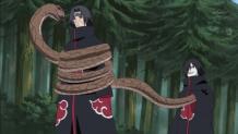 After successfully breaking out of Itachi's Tsukiyomi, Sasuke gains the upper hand on his weakened brother. With no other alternative, Itachi activates his second Mangekyo ability, Amaterasu, a black flame said to burn forever.