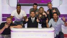 Radio 1 breakfast show host Nick Grimshaw, Niall Horan of One Direction and TV presenter Kirsty Gallacher join host James Corden and regulars Jamie Redknapp, Andrew Flintoff and Jack Whitehall on the sports-based comedy quiz