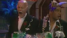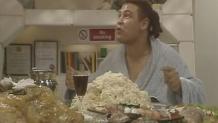 Lister asks a malfunctioning dispenser unit for a Toffee Crisp and triggers the ship’s self-destruct sequence, the only way out being a “body swap” with a dead, high-ranking officer. Inspired, Rimmer suggests a two-week trade: Lister’s body for his, the sweetener being that he’ll return it in tip-top physical condition. Unfortunately, the pleasures of the flesh prove too much for the weak-willed hologram, the fitness regime descending into an orgy of binging and self-abuse.