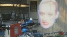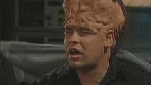 Lister tries in vain to teach Kryten how to lie, insult, cheat and disobey orders. Lister gives up when Rimmer calls Kryten on a trip "moon-hopping". On the trip they receive a distress call and Kryten goes to investigate against Rimmer's orders. Kryten rescues a "female" droid called Camille who he falls in love with, even though droids aren't supposed to have feelings like that. Kryten takes Camille back to Starbug, but when Rimmer sees her, she's a hologram who is interested in him. They bring her back to Red Dwarf and then Lister sees a human female with tastes similar to him. Lister notices how everyone reacts to Camille and she confesses to Lister that she is a Pleasure GELF (Genetically Engineered Life Form) programmed to be everyone's perfect companion. The Cat goes to see, and it is not surprising that he sees himself! The GELF turns into her true form at Kryten's request which is a huge green blob. Despite her appalling appearance, Kryten still decides to ask her to dinner