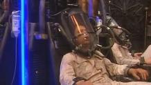 Thomas Allman is in his room when a man dressed in black with a white skull-like mask comes along, charges him of being a waste of skin and erases him, replacing him with a more well-built version of himself... The crew are flying along in Starbug when they lose control of the ship. Using Lister's body, something announces itself as The Inquisitor and that they will return to Red Dwarf to face judgement. Kryten later describes the Inquisitor as a self-repairing simulant who survived to the end of time to find no heaven or afterlife. So he built a time machine and went back and forth through time, judging everyone on whether they have lead a worthwhile life, deleting the ones who didn't and replacing them with "the sperms that never got a chance". Back aboard Red Dwarf, the inquisition begins. Rimmer and Cat survive the trial because of their shallowness and low standards, but Lister and Kryten could have made more of their lives and are removed from history. Just as their physical f