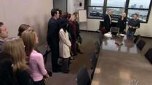 In the sixteenth week of the Apprentice job interview, the final three candidates are faced with actual interviews - not by Mr. Trump, but by top executives from four of America's largest corporations.