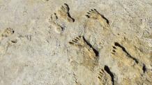 Ancient footprints provide new evidence of humans and extinct giant beasts of the Ice Age.