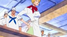 In disguise, Sanji shows the Marine chefs the proper way to prepare a meal.