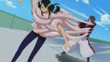 The bickering rivals Sanji and Zoro manage to overcome the opposing team by working together. Luffy chooses Tonjit's horse, Sherry over Chopper.