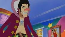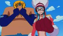 Once Foxy wins back his crew, he captures the Strawhats. Nami and Luffy fight Foxy and although he's defeated, his crew accepts him back. Later, they sail to an island where they meet someone Robin knows; a Marine named Aokiji.