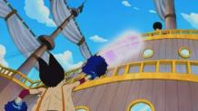 Luffy continues to battle Foxy with the odds not in his favor, and the fight continues inside Foxy's ship.