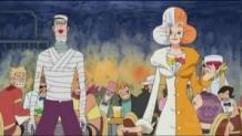 Sanji struggles against the persistent transsexuals in the Kamabakka Kingdom, while Chopper is taking care of a giant chicken in the Torino Kingdom.
