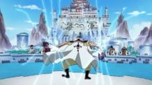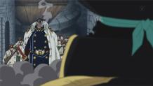 While Luffy's on his way to rescue Ace, everyone at Marine Headquarters get's ready for the execution. The present Shichibukai and the three admirals are summoned to get ready for Whitebeard's attack. At every instance, a Shichibukai or admiral is introduced there is a series of recap clips related to that character, with the exception of Akainu who is still a mysterious entity.