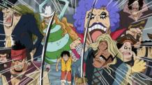 One battle after the other, it's a complete chaos out on the battlefield. Luffy together with Jinbe, Ivankov and the rest of Newkamas head on to battle the Marine soldiers. While Buggy plays safe as he decides to team-up with Whitebeard and fight against the Marines. Ace resolves to prepare for his execution and to face the blades of justice, so that the war will end soon. Moriah once again attempts to get Luffy, but Jinbe takes him on instead, beating him quickly. As Luffy advances on, he has drawn attention from Tashigi, which startled Smoker as he immediately attacks Luffy. Luffy having trouble hitting his enemy, nearly being killed by Smoker if not for Hancock's furious intervention. Meanwhile, Ivankov faces off with Bartholomew Kuma, not knowing why he is being attacked by an old comrade, Donquixote Doflamingo reveals that the Kuma he knew before is dead.