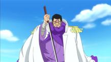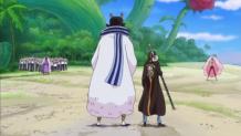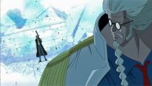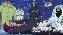 Admiral Issho and Donquixote Doflamingo prepare to fight Trafalgar Law, who is trying to stall them long enough for the Straw Hat Pirates to accomplish their missions.
