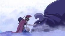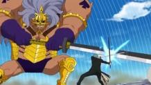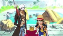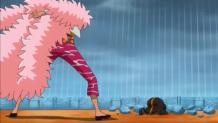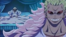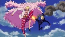 Law's attack proves powerful - but Doflamingo's power has depths which he and Luffy haven't bargained for. When Doflamingo makes his counterattack, Luffy stares him down with an amazing power.