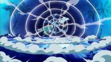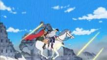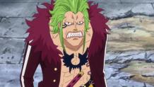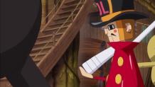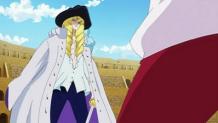 Jesus Burgess of the Blackbeard Pirates tries to agitate Sabo, mocking Ace's final words in order to unsettle him enough that he can try to steal the Fare-Flare Fruit! Meanwhile, people of Dressrosa beg King Riku to resume the crown when Navy Admiral Fujitora steps in and takes a stunning action!